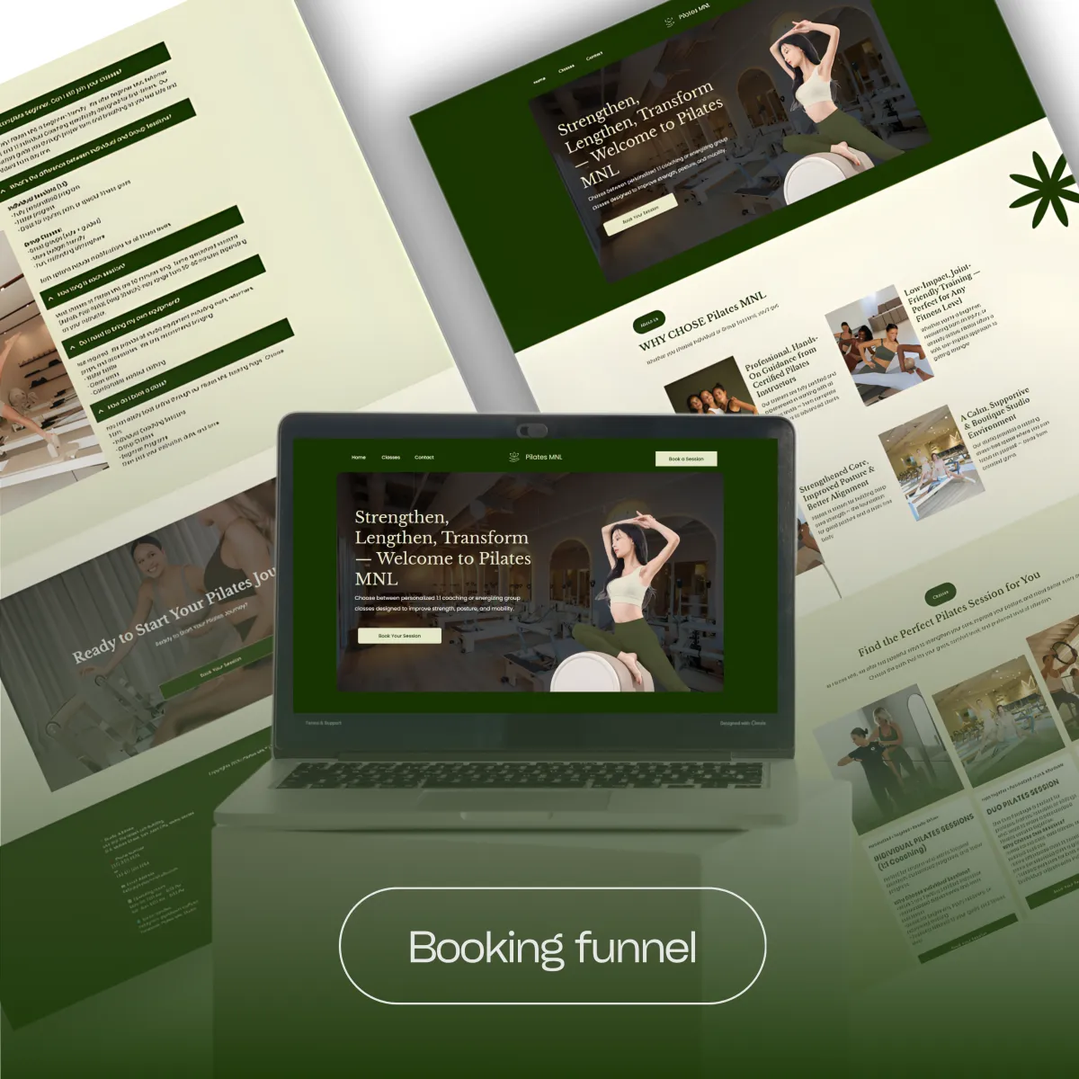 The Pilates MNL Booking Funnel is designed to guide users smoothly from discovery → class selection → booking → confirmation, while capturing essential contact information and connecting them immediately to the correct workflow automation.
