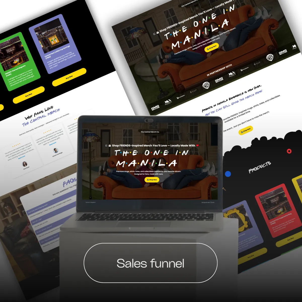 A high-converting sales page promoting limited-edition, FRIENDS-inspired merchandise, available even after the FRIENDS in Manila Experience has ended. This page showcases products, builds emotional appeal, and drives users to checkout.